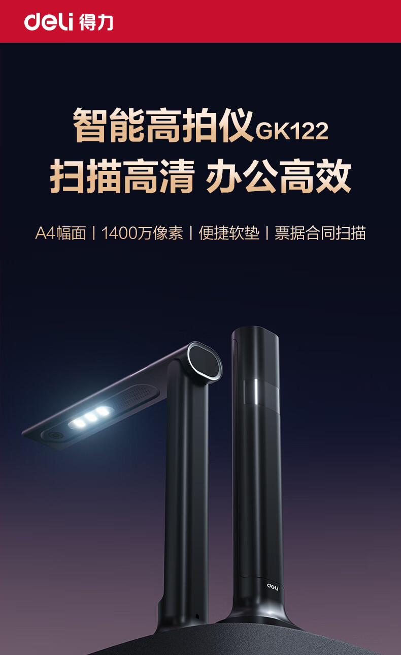 商品名称:得力扫描仪 1400万像素高拍仪 照片扫描仪 扫描仪自动连续 高速办公用 文件扫描 A4软底 GK122