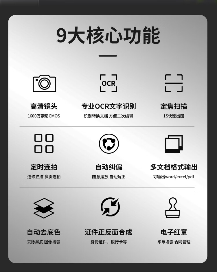 商品名称:良田(Eloam)高拍仪 高速扫描仪 1600万定焦 自动连续扫描合同票据 办公便携扫描OCR文字识别 S580P